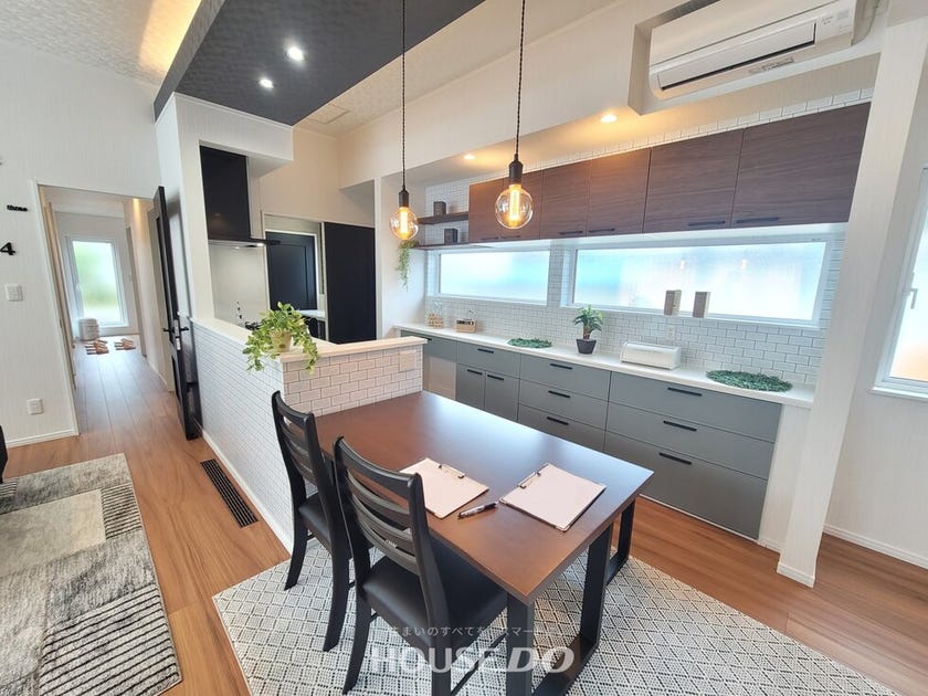 横並びのダイニングは配膳やお片付けがしやすいメリットが。